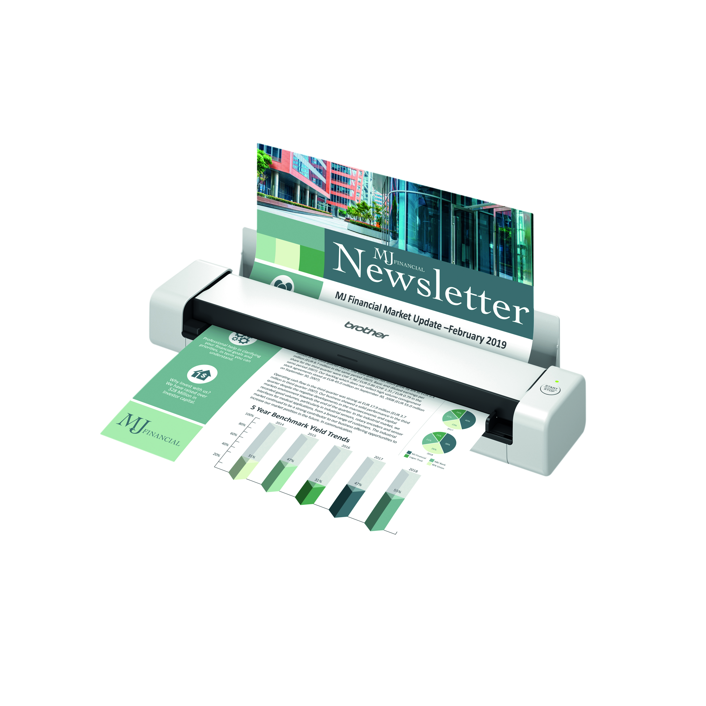 The Brother DS740D document scanner has a scan speed for both colour and monochrome prints of up to 15 pages per minute, creating high quality digital files. The vertical exit of the paper means that there is no need for additional space behind the scanner. Designed with efficiency in mind, the scanner will digitize, save and share information, ensuring digital files are easy to find, modify and share. Light and compact, the DS-740D is perfect for mobile workers or when space is limited and offers fast scanning of double-sided documents.