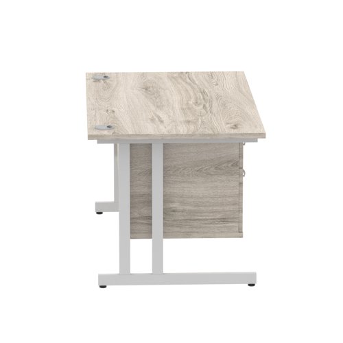 Impulse 1400 x 800mm Straight Office Desk Grey Oak Top Silver Cantilever Leg Workstation 1 x 2 Drawer Fixed Pedestal