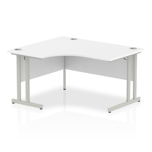 Impulse 1400mm Left Crescent Office Desk White Top Silver Cantilever Leg