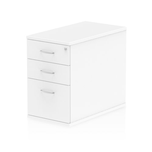 Today's offices, meeting rooms and storage areas all have a big demand on ever diminishing space. Having efficient, attractive storage is a key part of the workspace environment. This desk high three-drawer pedestal featuring two stationery drawers and a filing drawer comes pre-assembled in a high definition wood finish with high quality fittings. Desk high pedestals provide at desk storage while also extending the working area at the desk.