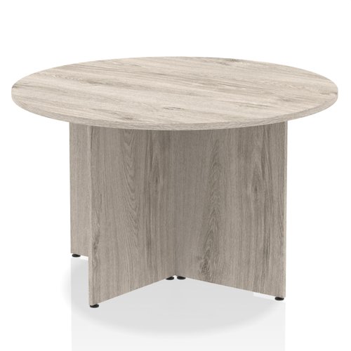 Impulse 1200mm Round Table Grey Oak Top Arrowhead Leg