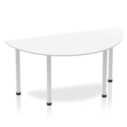 Impulse 1600mm Semi-Circle Table White Top Silver Post Leg